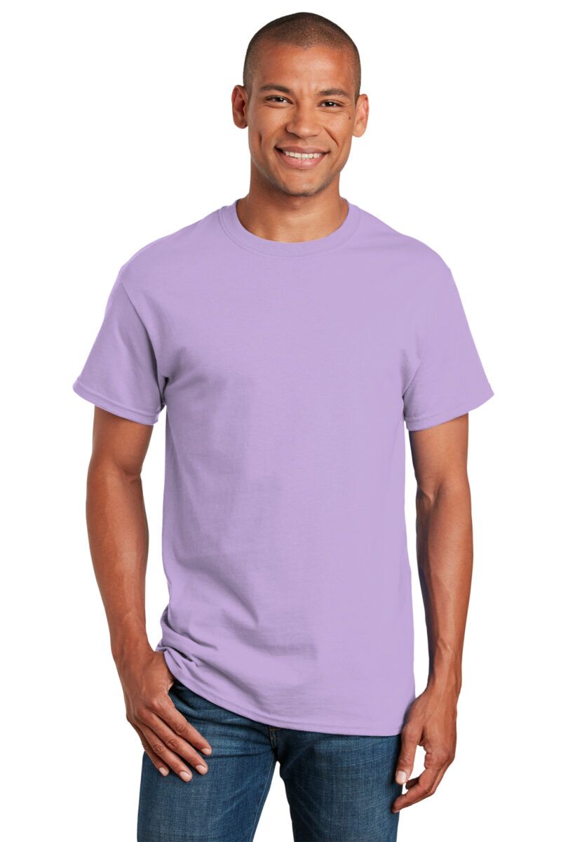 - 50/50 cotton/poly (Dark Heather, Safety Pink, Safety Green, Safety Orange, Heathered Cardinal, Heathered Indigo, Heathered Navy, Heathered Sapphire)